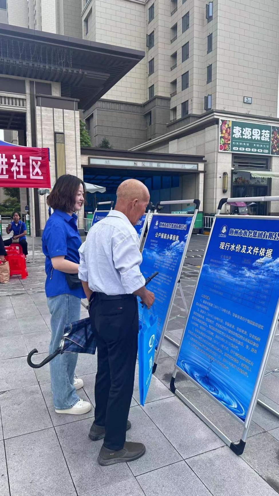 活動現(xiàn)場,市水務(wù)集團(tuán)志愿服務(wù)隊在小區(qū)門口廣場有序搭建宣傳展架、懸掛宣傳橫幅、發(fā)放供水宣傳資料,工作人員以飽滿的熱情接待每一位前來咨詢的用戶。